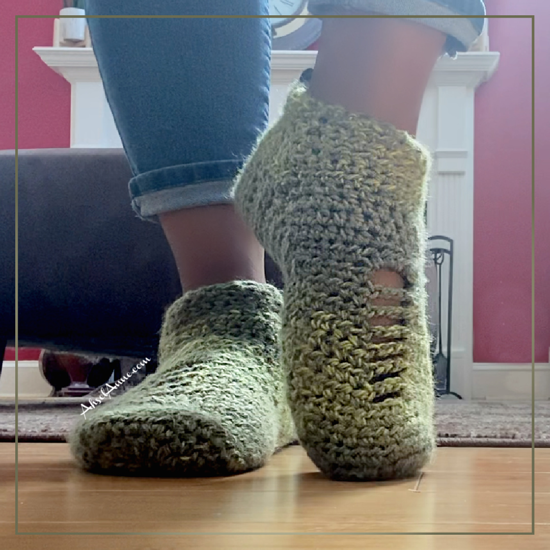 Note: This stitch count around the ankle may vary but aim for 32 stitches around. This way you will not have to decrease later, the goal is for the booties to fit nicely around your ankle.
