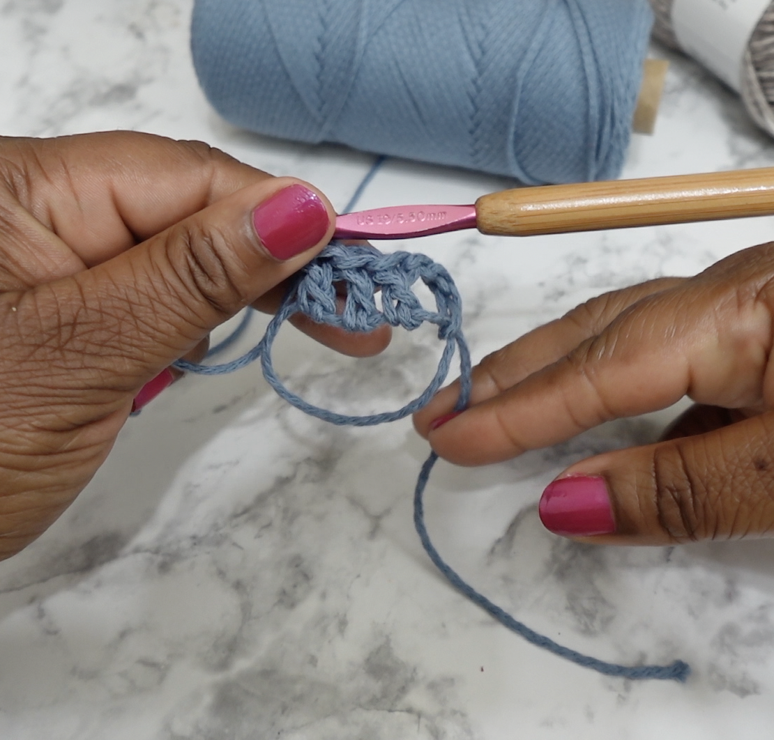 Magic Circle– an adjustable loop (or ring) technique that has a yarn tail that pulls to close, allowing the center hole to seal tightly closed.