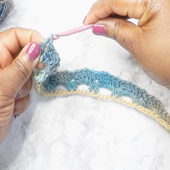 Turn the Seaside Shawl/Scarf horizontally and work along the edge.
